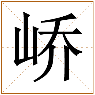 峤字读音是qiáo,起名笔画数是15划,五行属土。峤字,本指高而尖的山。泛指高山或山岭。
